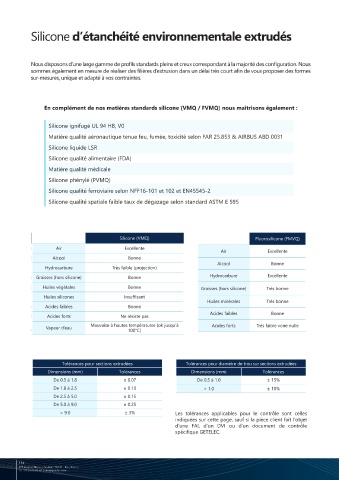 En complément de nos matières standards silicone (VMQ / FVMQ) nous maîtrisons également :