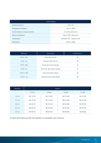 Dureté silicone ou mousse alvéolaire 25 ou 40 ou 60 shore A