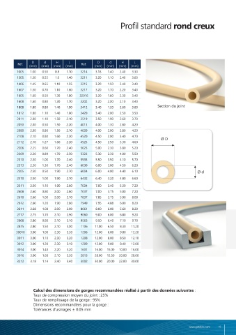 Calcul des dimensions de gorges recommandées réalisé à partir des données suivantes : Calcul des dimensions de gorges recommandées réalisé à partir des données suivantes :