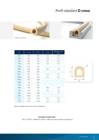 1617 GT1000 = référence profil + référence de la matière conductrice