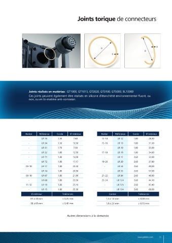 Dimensions spécifiques Joints torique de connecteurs