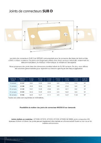 Possibilité de réaliser des joints de connecteur MICRO-D sur demande