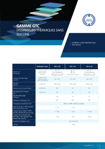 Conductivité thermique ASTM D 5470 4.2 ± 0.2 4.2 ± 0.2 6.3 ± 0.2